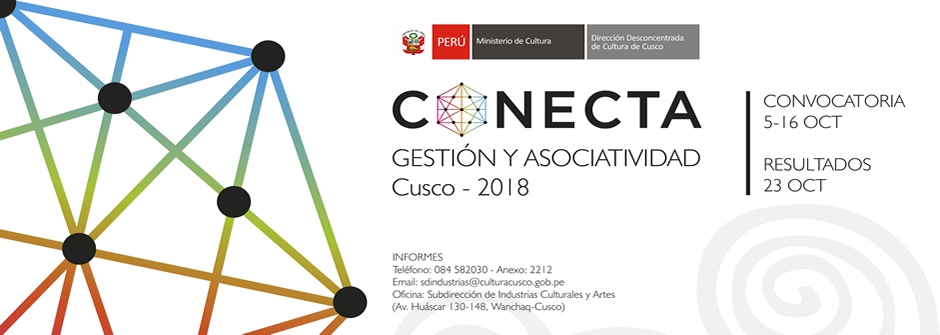 Para mayor información, ingresar al siguiente link: http://www.culturacusco.gob.pe/event/conecta-gestion-y-asociatividad/2018-10-05/