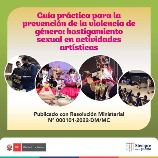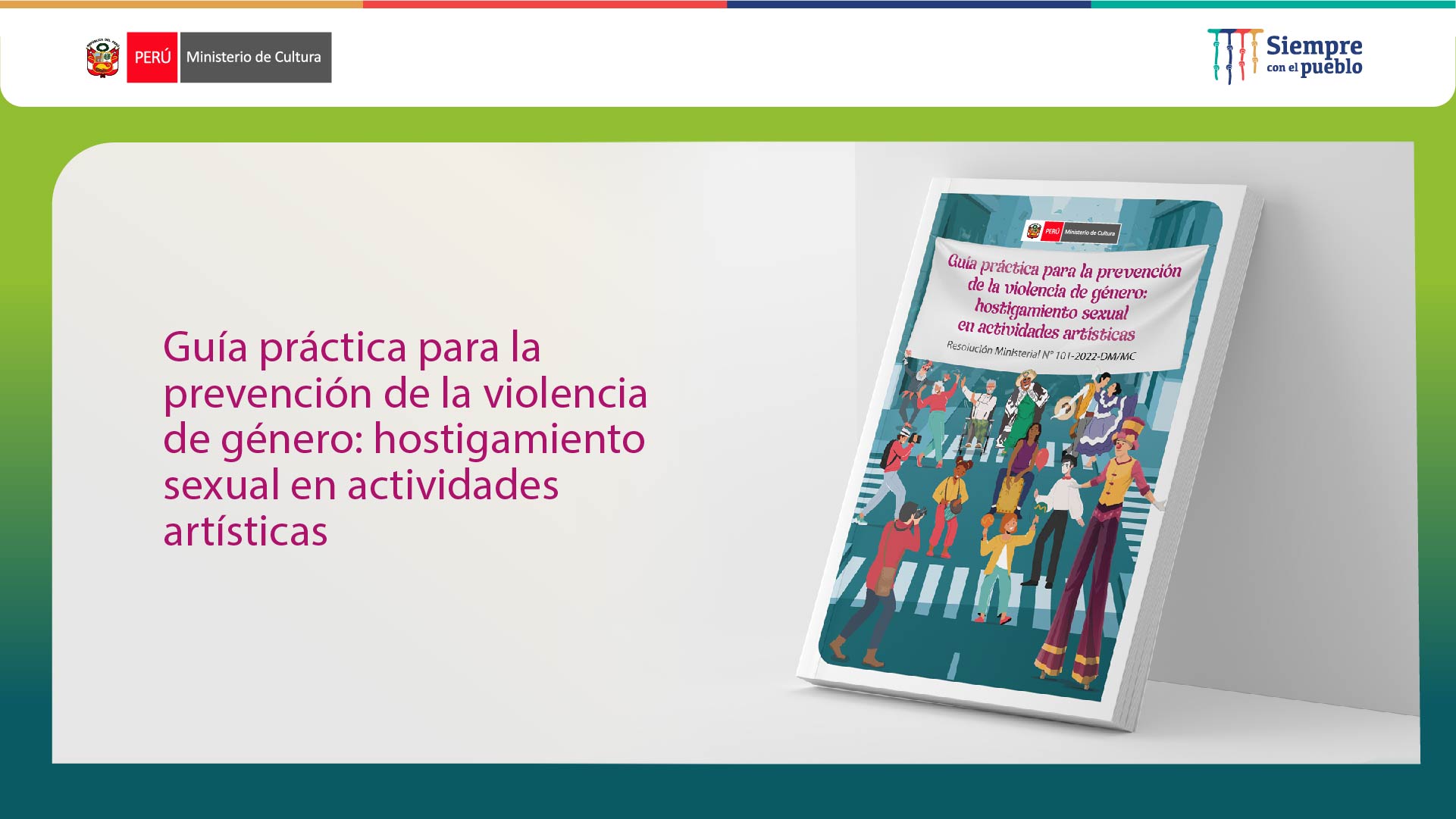 Puedes revisar  la  Guía N° 001-2022/MC, “Guía práctica para la prevención de la violencia de género: hostigamiento sexual en actividades artísticas”, que en calidad de anexo forma parte integrante de la presente resolución en el siguiente enlace