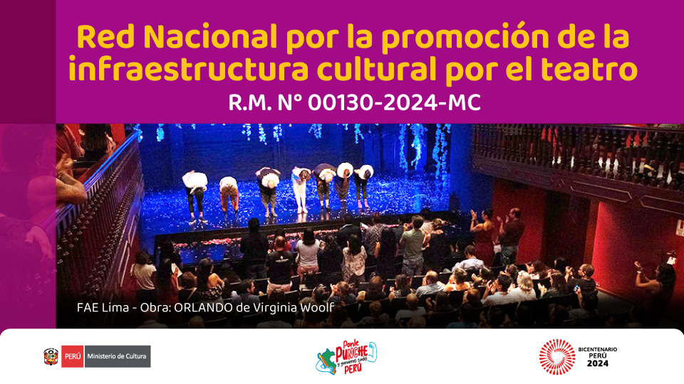 El 27 de marzo del 2024 se publicó la Resolución Ministerial N° 000130-2024/MC que establece la creación de la “Red Nacional por la promoción de la infraestructura cultural por el teatro”, con el objeto de contribuir a la reactivación económica de las artes escénicas, a través de facilitar el uso temporal y gratuito de escenarios en museos, museos de sitio para los ensayos y/o puesta en escena de obras gratuitas o con costo, en museos y museos de sitios, y otros espacios administrados por el Ministerio de Cultura.
