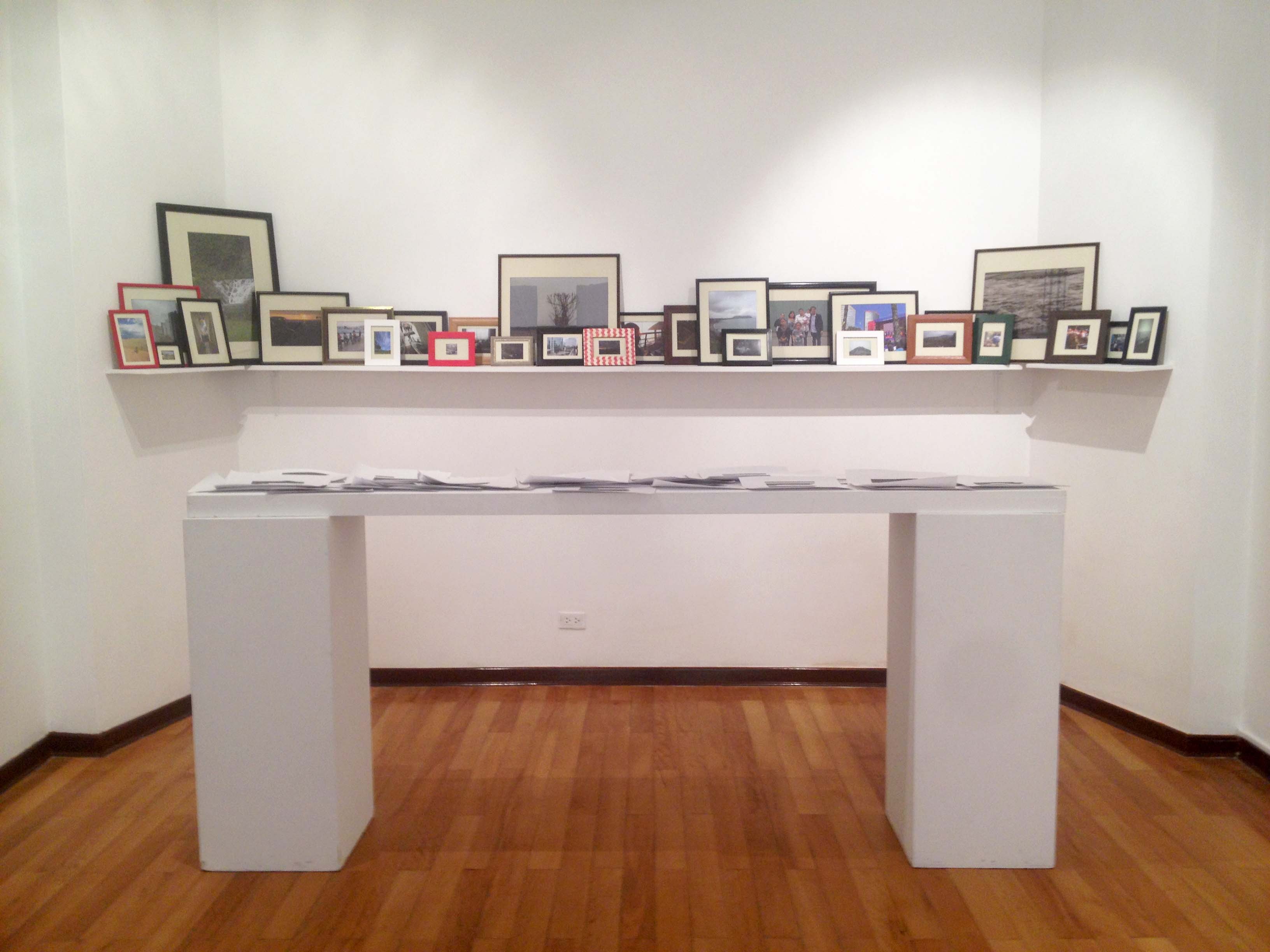 En la propuesta de Claudia Holgado se observa una intencionalidad por indagar sobre el imaginario colectivo vinculado al arraigo y la significación del espacio en procesos de migración. Para ello lanza al espectador la pregunta ‘¿qué significa Lima para ti?’ y recolecta las respuestas obtenidas tanto en imagen como en texto para exponerlas en lo que simula ser la repisa de una sala de estar. En ella, las fotografías cuidadosamente enmarcadas se acumulan sobrepuestas unas a otras como si quisieran formar el gran, múltiple y caótico paisaje que es Lima. La autora invita a sus interlocutores visuales a fotografiar Lima con la intensión de diluirse como autor curador y a la vez tender un puente de visión panorámica sobre el objeto visual fotográfico. Las lecturas se enriquecen así.