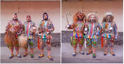 Observemos a los tres danzarines bajo la luz de sus identidades y luego amplificados por la magnitud de las sombras de sus “personajes enmascarados”. Desde estas dos fotos podemos señalizar nuestra mirada a las metamorfosis del cuerpo danzarín; que está siempre en busca de ser un canal capaz de ser habitado por el mundo circundante, sin perder la conexión con el reino inmaterial. Desde lo visible emergen las potencialidades antes ocultas, y cada danzarín, tradicional o contemporáneo, no importa, confrontará temores y convicciones al tratar de mantener viva la llama del danzante investigador.
