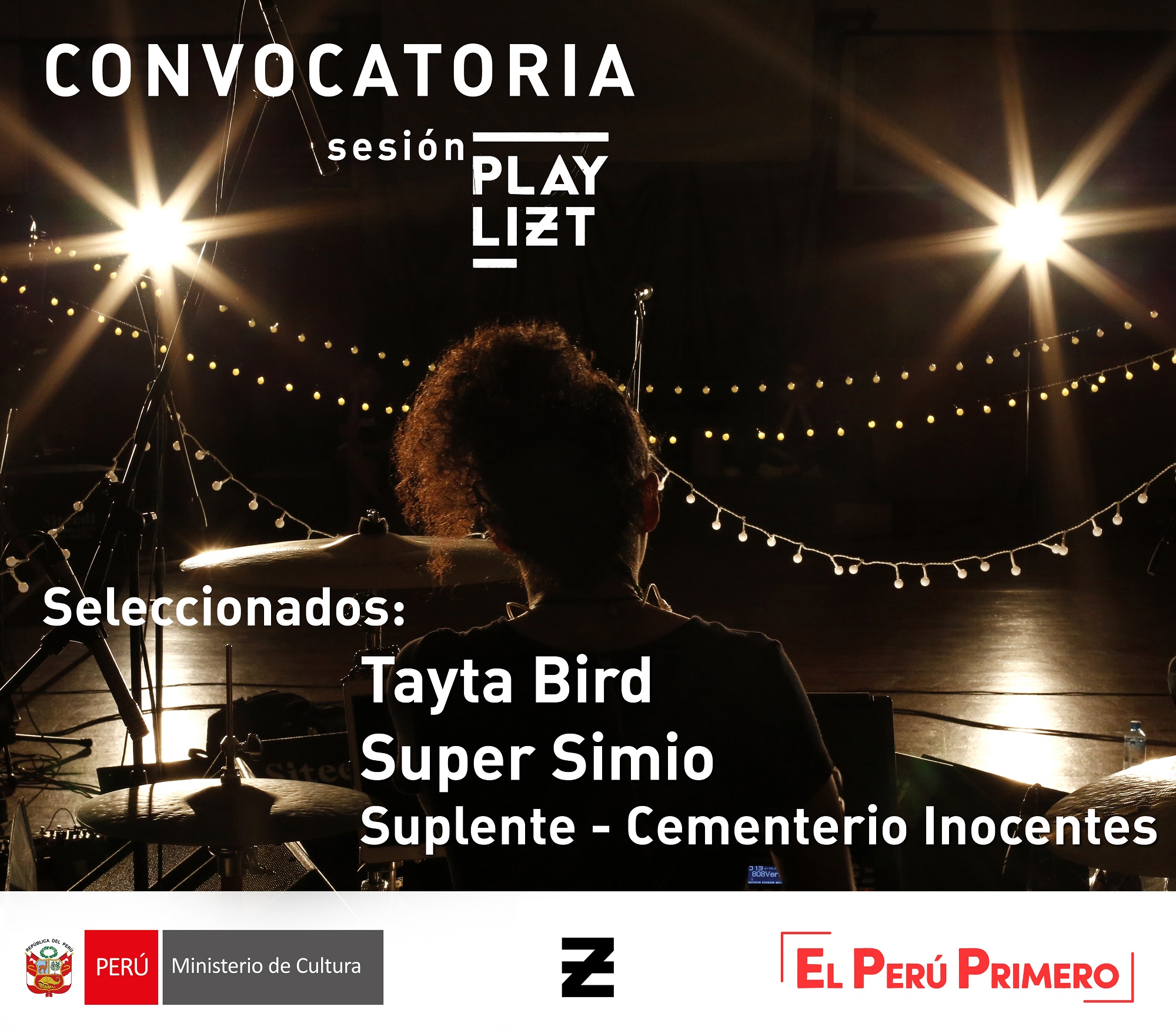 El Ministerio de Cultura, a través de la Dirección de Artes, agradece a todos los solistas y grupos musicales postulantes a la convocatoria Sesión Playlizt 2019; y anuncia los resultados.