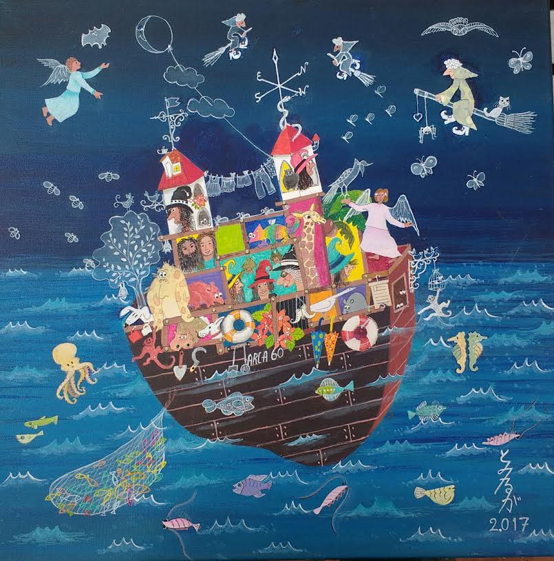 Desde los cándidos mundos que le caracteriza al Arte Naif; precisamente en estos tiempos de conflictos, luchas de poder, ambiciones, corrupción, crisis y explotación del hombre por el hombre, se manifiesta con énfasis en transmitir un mensaje de reflexión para defender la vida y explorar la bondad, exhortando a las naciones mayor sensibilidad entre los pueblos del mundo.