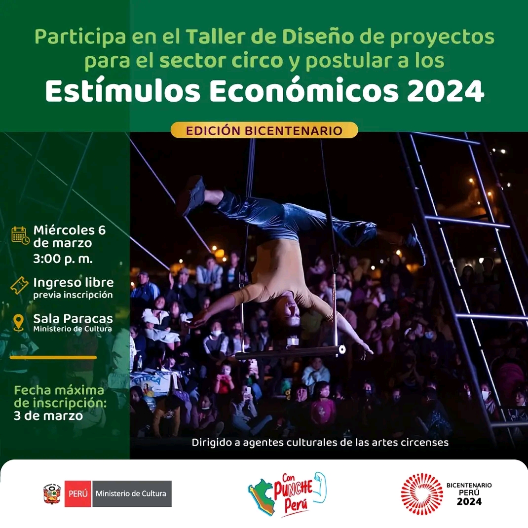 El Ministerio de Cultura del Perú, a través de la Dirección de Artes, presenta las capacitaciones para postular a la primera convocatoria de los Estímulos Económicos 2024.