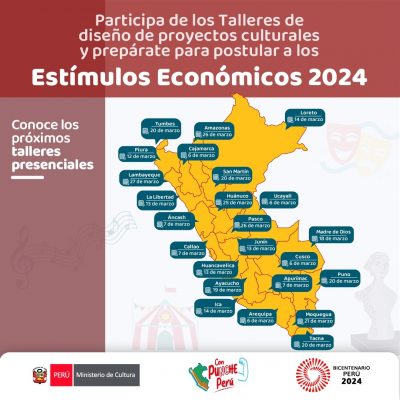 El Ministerio de Cultura del Perú, a través de la Dirección de Artes, presenta las capacitaciones para postular a la primera convocatoria de los Estímulos Económicos 2024.