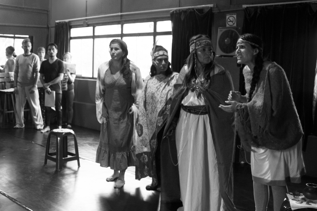 Elenco en pleno ensayo de El Sueño de MachuPikchu