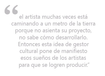 Yo soy un artista plástico que está llevando una maestría en Gestión Cultural, Patrimonio y Turismo. La elegí porque buscaba una maestría que me entregue nuevas herramientas para entender el arte y la cultura. Una mayor comprensión no del arte como producto, sino cómo se gestiona el producto arte. La maestría que estoy llevando en la Universidad San Martín de Porres me está sirviendo mucho para aclarar cosas que yo sabía intuitivamente, me está dando pautas sobre marco legal, económico y administrativo. No sé si yo me convierta en un gestor cultural, yo soy un artista, un apasionado por el arte. Seguramente esa formación que estoy recibiendo va a ser un aporte muy grande en mi faceta de docente. Es muy bacán el tema de la gestión cultural porque de alguna manera te posiciona de forma real dentro del mercado del circuito artístico, el artista muchas veces está caminando a un metro de la tierra porque no asienta su proyecto, no sabe cómo desarrollarlo. Entonces esta idea de gestor cultural pone de manifiesto esos sueños de los artistas para que se logren producir.