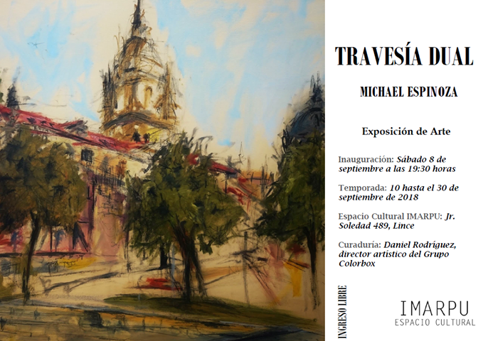 El sábado 8 de septiembre se inaugura “TRAVESÍA DUAL”, primera exposición individual el artista plástico Michael Espinoza, graduado en Bellas Artes y Máster en estudios avanzados de Historia del Arte por la Universidad de Salamanca, España.