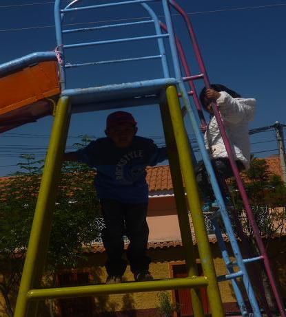 Foto 2: Los niños jugando. (2014). Jr. Quinua en el parque Maria Parado de Bellido/ Fotógrafo Karen. Reseña: Esta foto muestra como un niño y una niña juegan en el parque en el resbaladizo.