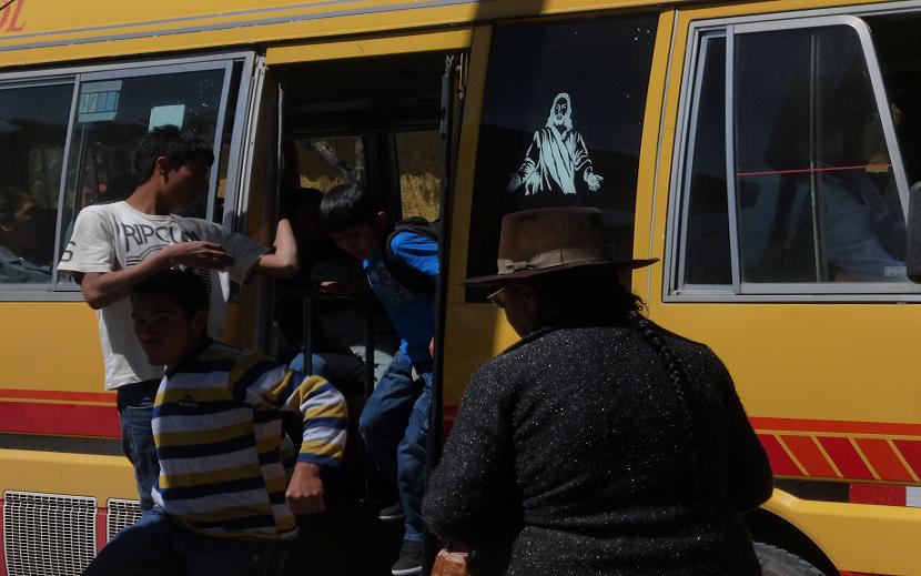 Foto 5: Bajando de la ruta. (2014). La calle de F. Vivanco donde la ruta 10 se estaciona en el paradero/ Fotógrafo Karen. Reseña: La foto muestra como es el día a día, viajar en una ruta para llegar a nuestro destino, y al llegar bajamos en un paradero y así continuar con nuestra lucha diaria para llevar un pan a casa.