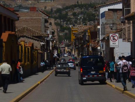 Foto 3: La calle del Jr. 9 de Diciembre. (2014). Jr. 9 de diciembre ultima cuadra/ Fotógrafo Karen. Reseña: Se aprecia en esta foto de como es el transito de la calle del Jr. 9 de Diciembre de un día Sábado a las 11 a.m.