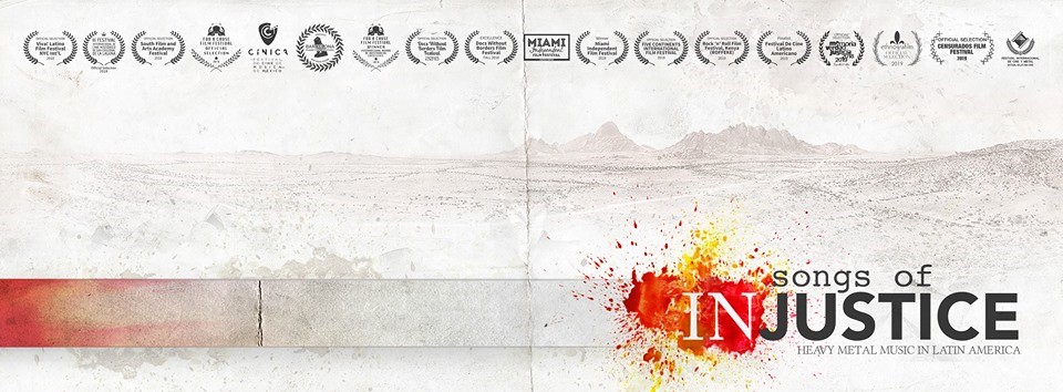 Fig. 1: “Banner de la película Songs of Injustice. Heavy Metal Music in Latin America, dirigido por el Dr. Nelson Varas-Díaz”. Imagen via Songs of Injustice Facebook Page.