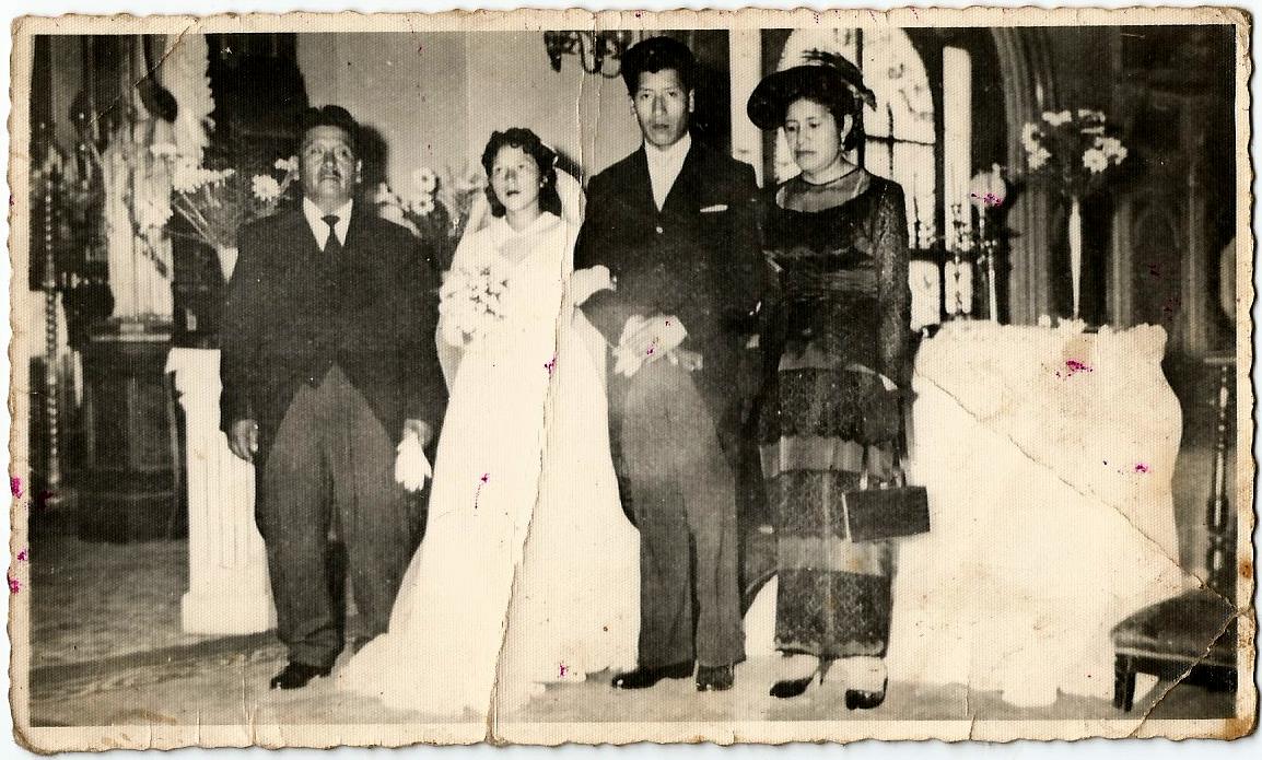 Foto 1. Matrimonio (1966) Lima/Victoria y sus hijos en su matrimonio/Fotógrafo desconocido. Reseña: Esta es una fotografía familiar, una pieza clave para identificar mi identidad que fue forjada por mi abuela Claudelia hermana mayor del personaje que se esta casando, Esta fotografía es importante , ya que narra el casamiento de mi tía-abuela en Lima. Obligando a sus hermanos a migrar junto a ella por ser la menor y comenzar una nueva etapa, Mi abuela Claudelia a pesar de estar en Lima y ver los cambios en su familia nunca dejo sus costumbres y su identidad. Siempre fue fiel a si misma , a su vestimenta y eso ha sido algo que siempre he valorado. | |  Foto 2. Identidad, creencia y familia. (1970) Lima/Claudelia fiel a sus polleras posa para la foto al lado de sus hermanos y sus pequeños sobrinos/Fotografo desconocido. Reseña: Esta fotografía describe como mi abuela Claudelia al migar a Lima no deja sus polleras, su vestimenta.Sigue siendo fiel consigo misma y sus creencias, esta fotografía me punza,es parte de mi y de las raíces que mi abuela nunca quizò que olvidara, a pesar de haber nacido en Lima y vivir en ella. | |  Foto 3. Mamà Delia. (1978). Tapùc- Cerro de Pasco/Claudelia y sus hijos en el corral de la casa/Fotógrafo desconocido. Reseña: Esta fotografía muestra a mi abuela al lado se su hijo menor que vendría a ser mi padre y su hijo mayor que vendría a ser mi tío. Reflejando mis raíces, mi identidad, que fue formada por mi abuela, compartiendo conmigo la cosmovisión andina y sobre todo a ser fiel con uno mismo, Veo ese ejemplo en ella a pesar de venir a Lima ella mantuvo siempre su identidad y el amor por su pueblo reflejada en su vestimenta, Esa misma vestimenta que la acompaño hasta el día de su muerte. | |