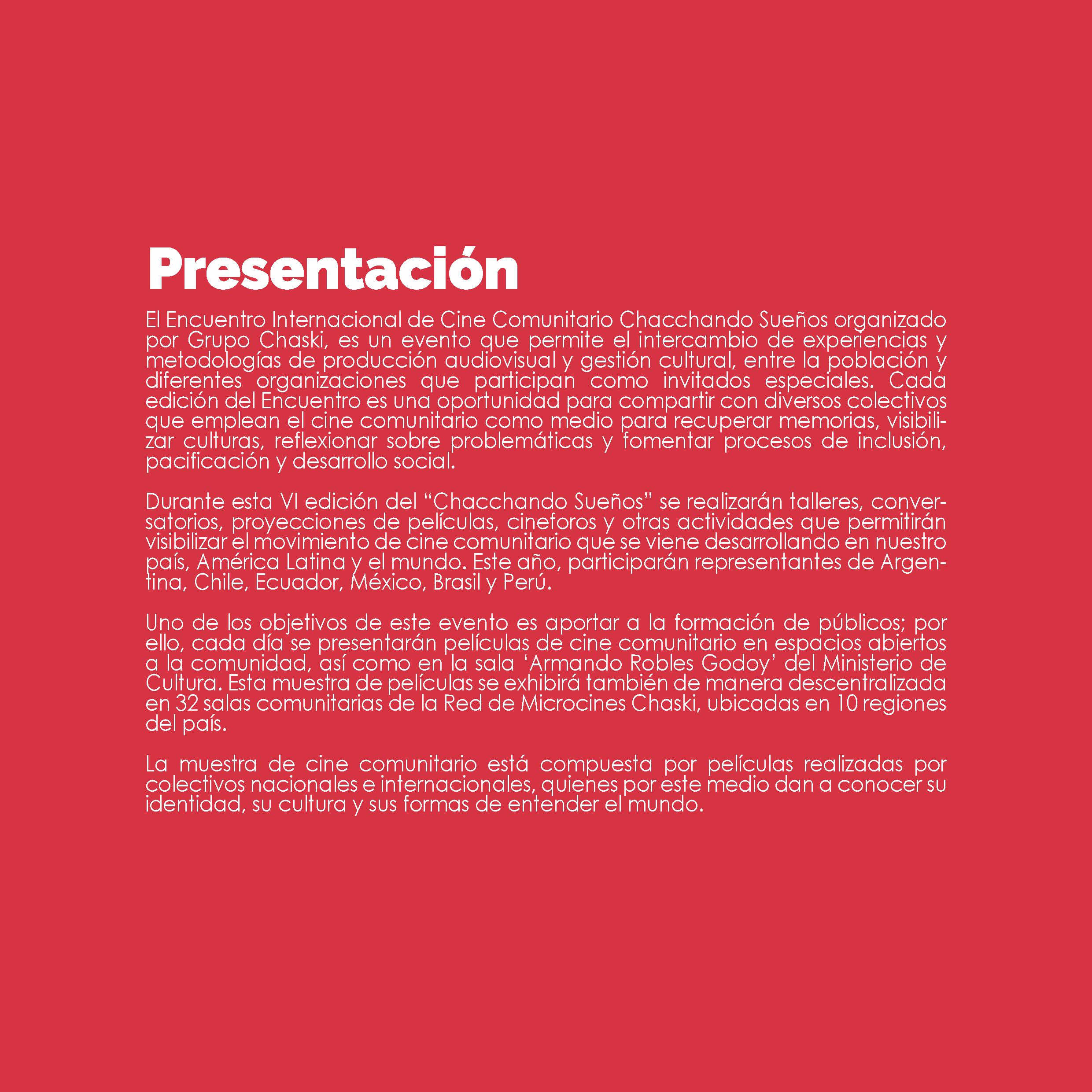 VI Encuentro Internacional de Cine Comunitario Chacchando Sueños